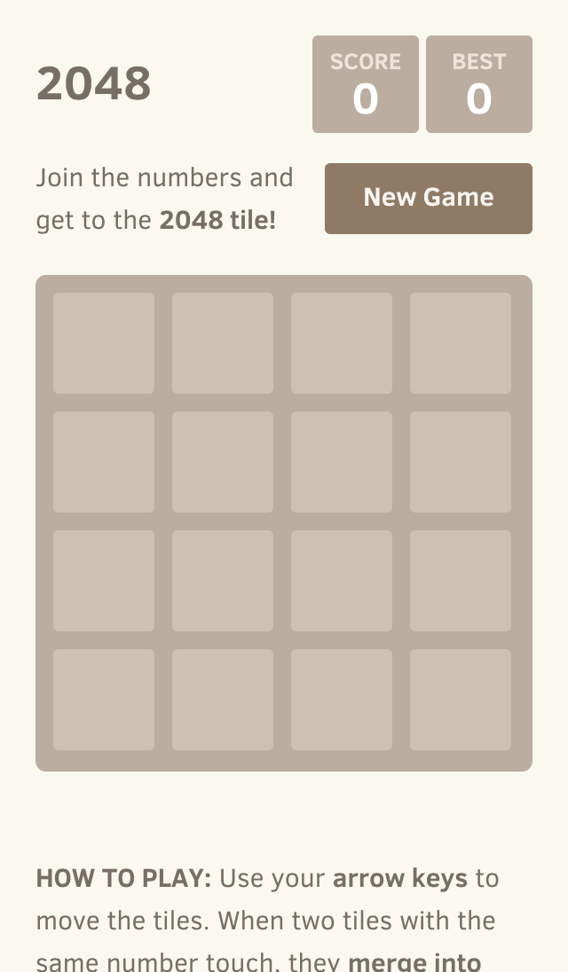 游戏规则: 使用方向键或屏幕移动方块。当两个相同数字的方块相撞时,它们会合并成一个!